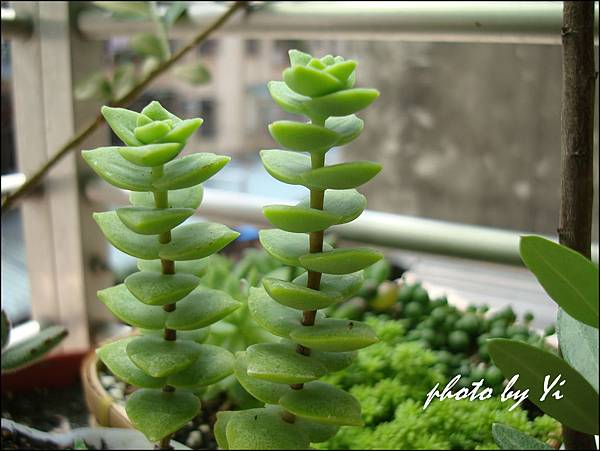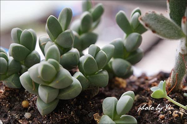 雖然很迷你,但一粒粒芝麻般大小藍綠色的葉子組合成一朵朵小玫瑰的樣子,好秀氣。