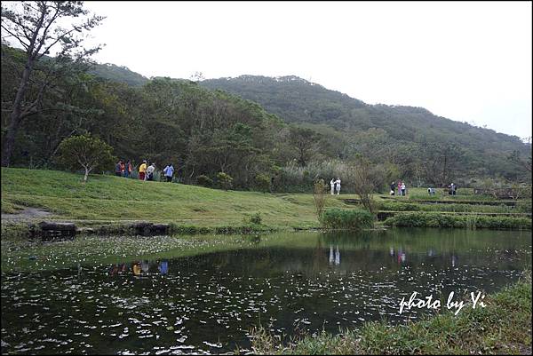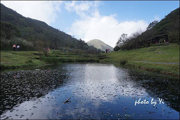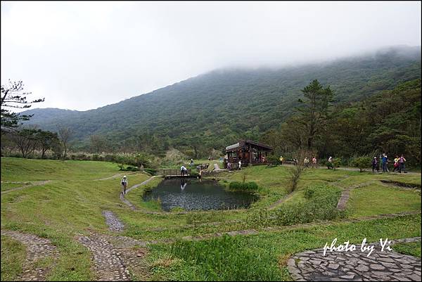 二子坪步道的另一端是位於大屯主峰與二子山之間的凹地「二子坪遊憩區」,這裡除了公廁還有一座蓮花池。藍天、白雲、一大片青青草原再配上遠山,尤其是因地形氣流變化,中午過後時而陽光灑落時而山嵐裊裊,對每天生活在水泥叢林的都市人來說就算用”仙境”來形容這眼前的景色也不為過。