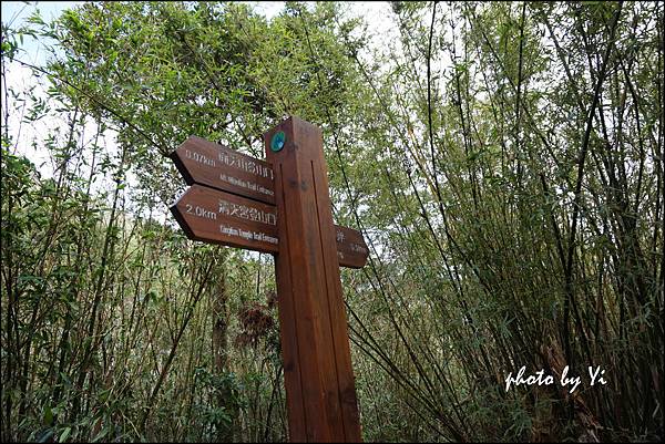 一行人一路上嘻嘻哈哈,談笑風生,不知不覺來到了這根指標下,「面天山登山口0.07km、清天宮登山口2.0km」,肉腳理所當然選0.07km…↓