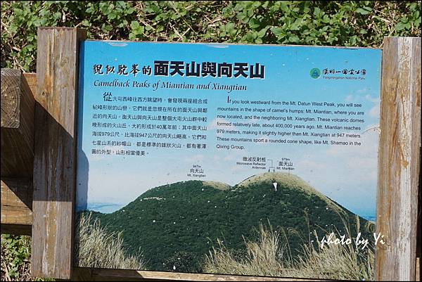 站在山頂上可以遠望士林地區、淡水、三芝一帶,只不過今天的能見度不高。還可以俯瞰對面的「向天山」,下山的叉路可以走到「向天山」,但好不容易拖著半條命爬上「面天山」的我們說什麼也不想繼續朝「向天山」前進,一心只想快快回到山下。